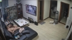 黑客破解家庭网络摄像头偷拍❤️老夫嫩妻客厅沙发一边看电视一边调情做爱这媳妇奶子真够大的
