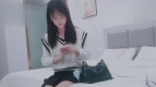 探花柒哥酒店約炮樣子有點冷的護校學生兼職妹一邊手機放着av一邊操她